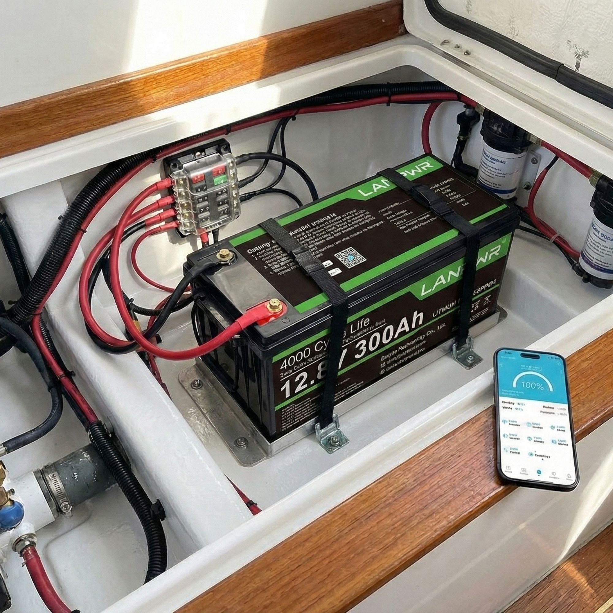 Take control with total visibility. As shown here, this model fits perfectly in tight hatches and syncs directly to your phone. Monitor voltage, capacity, and runtime instantly no more guessing.